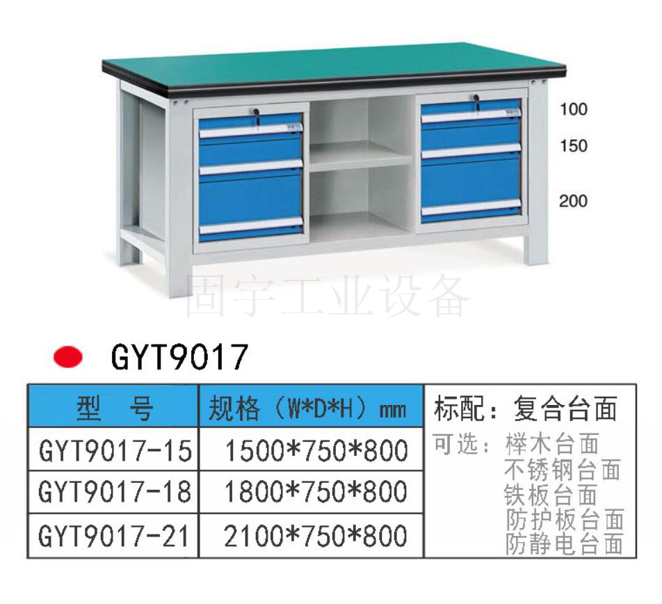 工作臺采用優(yōu)質冷扎板精工制作而成,堅固的工作桌框架,牢固平穩(wěn),可使工作桌承重1000kg;多種工作桌面選擇,可配合不同使用的要求;工具吊柜(箱),側柜(箱)燈架,調節(jié)腳杯,,外形美觀;層板,抽屜質量上乘,承重大,抽屜內(nèi)可根據(jù)需要任意分隔;節(jié)約空間,適用性強。 范圍 工作臺適合于模具、鉗工、檢測、維修、組裝等各種不同應用場合,具有良好的耐腐蝕性,耐臟性,抗沖擊性和承重能力強。桌面經(jīng)特殊處理,具有防腐、抗沖擊力強等特點,多種桌面的選擇,可配合不同的使用要求;所配置的抽屜、柜門方便使用者存儲工具;桌角上預留電源孔,方便安裝電源插座。工作臺(桌)分為輕型(可承重300公斤),中型和重型工作臺(桌)可承重1000公斤及特制的工作臺。可根據(jù)需要靈活地配置各種吊柜、單柜、雙柜等,可加裝掛板,電器板,燈頂板、調節(jié)腳杯,輪子,擱板等桌上部件,具有多種選擇,能夠滿足各種工位的需求。 工作臺材質采用優(yōu)質冷軋鋼板,表面采用靜電噴涂處理而制成,堅固的工作桌框架,牢固平穩(wěn),可使工作桌臺面均勻承重達到1000kg。桌面有多種材質組成,適用于各行業(yè)辦公場所。可配合工具柜,吊柜,掛板,單開門柜使用。抽屜、承辦承重大,性能好,抽屜里可根據(jù)需求配置分隔條 工作臺分類:根據(jù)臺面的不同分為:櫸木工作臺、鋼板合成工作臺、防靜電工作臺、高分子工作臺;根據(jù)承重的不同分為:輕型工作臺、中型工作臺、承重型工作臺;根據(jù)功能的不同分為:多功能工作臺、帶吊柜工作臺等等。 臺面優(yōu)勢 復合臺面特性臺面平整度高,撓曲度為0.8mm。表面2mm厚度為高分子材料,使臺面耐酸堿、耐磨、耐油。臺面采用高壓纖維板,使臺面更具有抗沖擊性。特別的圓弧桌角,不易受撞擊損壞。高強度塑膠包邊堅固、實用、不易損壞、不易脫落。櫸木桌面特性桌板使用櫸木與防水膠經(jīng)加壓制造而成。表面光滑平整,美觀不易變型,耐油、耐熱、耐酸、耐堿,適合一般工廠作業(yè)與精密模具維修,儀器置放與檢測等用途。不銹鋼包面特性桌板使用高壓合成板,表面包1-2mm砂面不銹鋼板,以達美觀耐用。耐高溫、耐磨損、耐油、使用壽命長,為多功能桌板,適合一般工廠、食品業(yè)、研究室、電子廠無塵室使用。輕型工作臺可承重300kg-500KG防火板臺面特性輕巧、美觀、耐磨、防火。層壓板臺面特性工作桌面平整,變型小,強度高,抗沖擊性好。 標準顏色 產(chǎn)品顏色 標準的顏色可分為6種:淺藍色(RAL5015), 電腦灰(RAL7035), 機床綠(RAL6011),深藍色(RAL5017)。